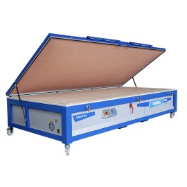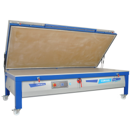 The Barth CORVUS-S Vacuum Press models impress with their small footprint. The sturdy folding construction in conjunction with the wheels allows you to use your vacuum press very flexibly throughout the workshop. The optional cover plate is not only a protection for the membrane, it also offers you a flat support and work surface. Equippe..